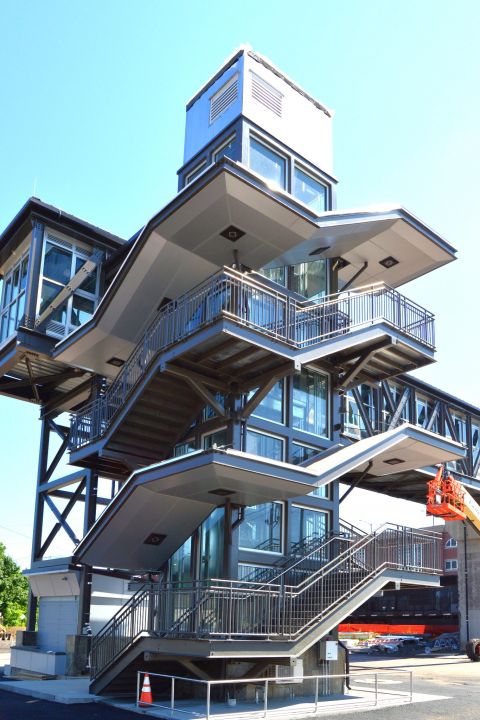 The stair tower at the Lansdale SEPTA station leads to an overpass above the tracks. Lansdale Borough is within North Penn School District, which will hold a special referendum on Jan. 16 to ask the public whether to borrow $97.3 million for high school renovations.