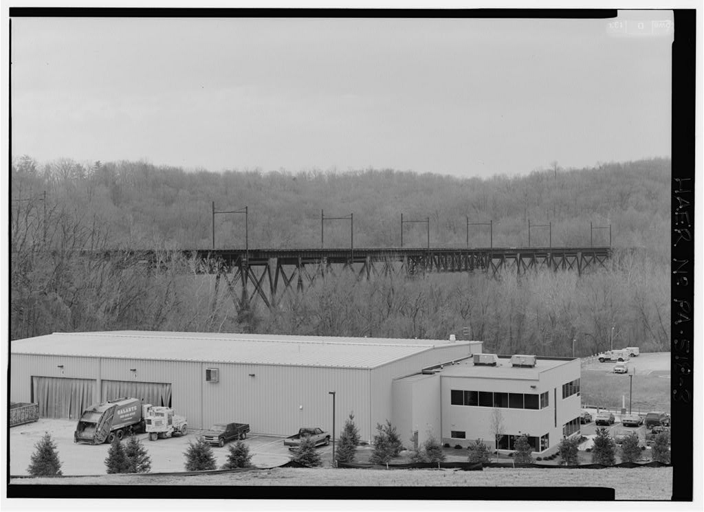 The Trestle Bridge south of Downingtown is 1,450 feet long and rises 132 feet over the east branch of the Brandywine River. The bridge has complex geometry — it descends slightly from east to west and was constructed with a slight curve. Chester County recently took ownership of the bridge from PennDOT and will likely use it to extend the Chester Valley Trail.